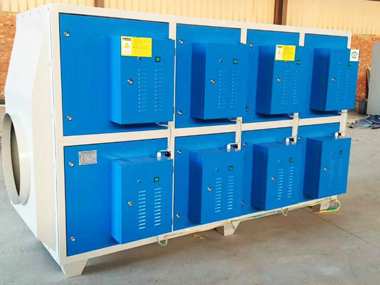 利用低温等离子净化设备中的介质阻挡放电过程中,等离子体内部产生富含较高化学活性的粒子,如电子、离子、自由基和激发态分子等。废气中的污染物质与这些具有较量的活性基团发生反应,转化为CO2和H2O等物质,从而达到净化废气的目的。